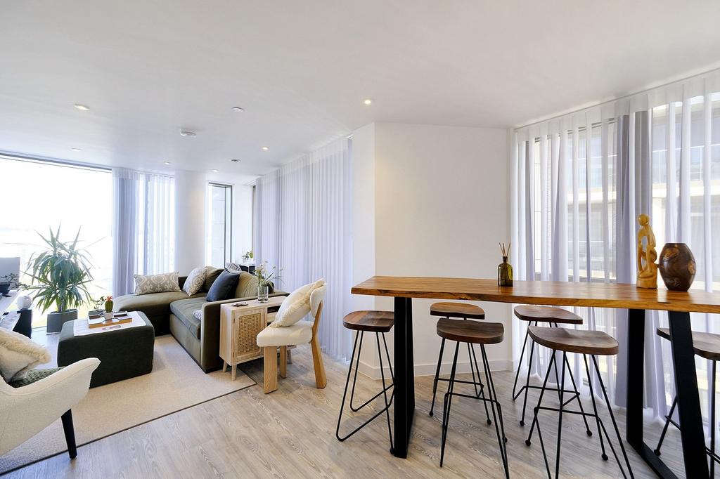 Situated at the end of the corridor with no passing footfall, this apartment comprises a full range of integrated kitchen appliances, complemented by luxurious wardrobes in the main bedroom suite, upgraded Amtico flooring throughout. The large balcony, accessed from the open plan kitchen, dining and living space offers views across the the Marina. As a valuable addition there is also secure parking for 1 car and a private store. Promising to be an extremely light and airy apartment, this apartment would be perfect for young professionals, investors, downsizers and those seeking a lock-up-and-leave lifestyle.