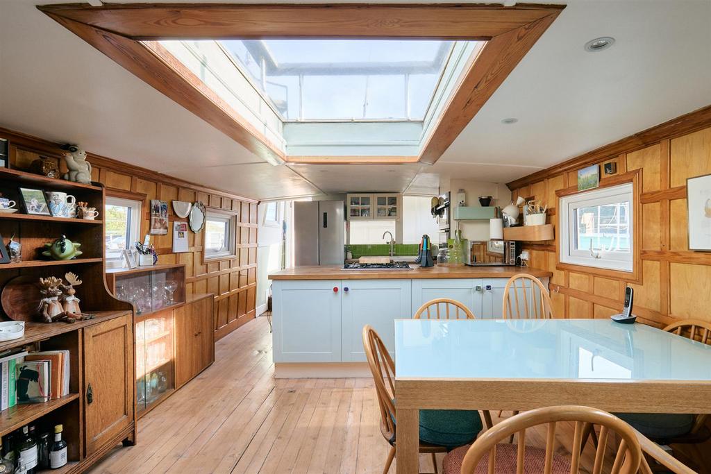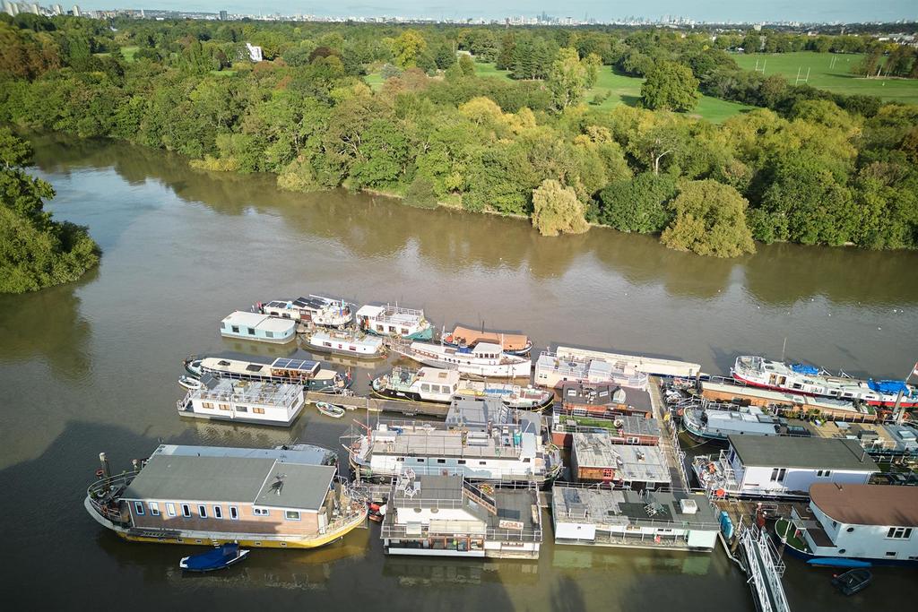 A rare opportunity for cash buyers to acquire a houseboat with one of the most secure residential moorings on the Thames. Situated in a resident-owned marina the purchase includes a sharehold in Thistleworth Marine Limited, ensuring long-term security. Unusually low mooring and maintenance fees, make this one of the most cost-effective residential moorings in London. A converted Humber Keel barge offering generous accommodation. The upper deck is arranged as a open-plan kitchen, reception, dining area and study, opening directly onto an external deck and roof terrace with river views. The lower deck comprises a master cabin with fitted wardrobes, two further cabins, a family bathroom, separate shower room and a utility area, with another possible fourth bedroom or workshop. Features include mains electricity, water and sewage, broadband and telephone wiring, and propane gas fired central heating. The marina enjoys a riverside position beside the Richmond Lock development, opposite Old Deer Park, and within walking distance of Richmond, St Margaret’s and Isleworth’s local shops and amenities. Council tax band A.