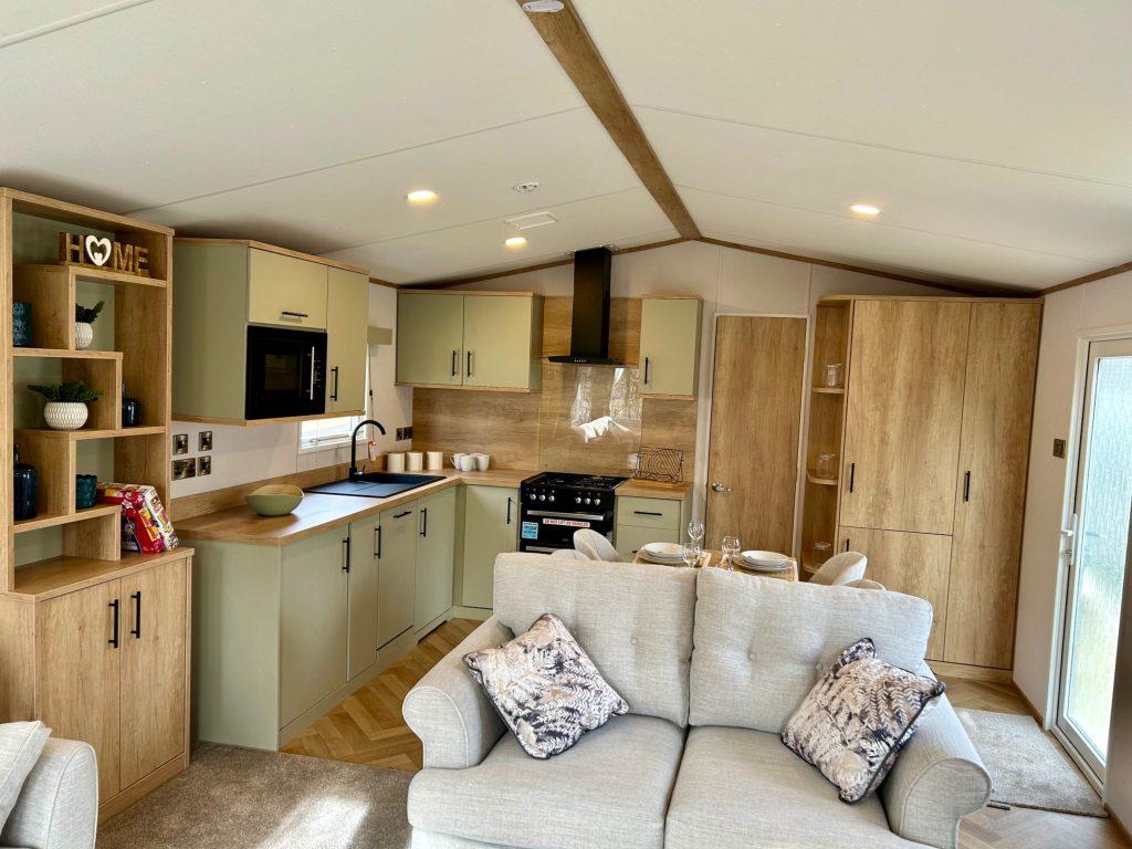 Step into the world of luxury and comfort with the Carnaby Regis Holiday Home - a beautiful retreat that blends warmth, elegance, and modernity. From the moment you enter, the open-plan layout creates an atmosphere of relaxation and luxury. Plush deep sofas, a traditional mantelpiece, and a captivating flame-effect fire make the living area perfect for entertaining guests or enjoying quality time with loved ones.
