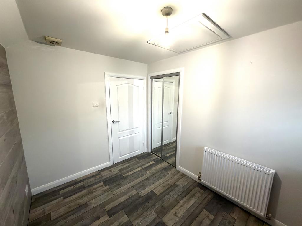We are pleased to present this 2 bedroom upper flat which is within walking distance of primary & secondary schools, local shops and amenities within the town of Larkhall. The property offers ideal accommodation for the first time buyer or buy-to let market. Well-presented throughout, internal viewing is recommended. The property comprises of internal stairway which gives access to front facing lounge. The lounge has double glazed window facing the front of the property, freshly painted with laminate wood flooring which flows throughout the property. Open plan to the kitchen which is fitted with modern base & wall units with breakfast bar divider incorporating integral oven & hob. Access from the lounge to 2 bedrooms and shower-room. The shower-room is fitted with three piece suite – low flush w.c. & coloured glass wash hand basin with vanity and shower enclosure. Both bedrooms are freshly painted with laminate wood flooring – bedroom 1 has fitted wardrobes providing ample shelve and storage space – sliding mirror doors. The property also benefits from gas central heating and double-glazed windows.