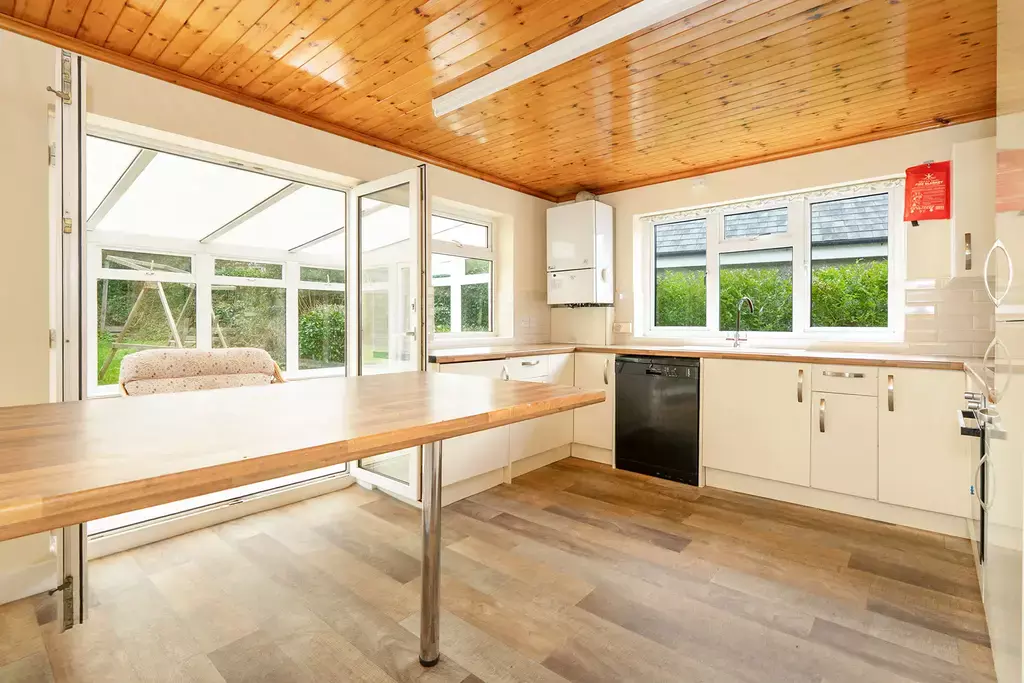 - Living room and a separate modern dining kitchen with access to a conservatory