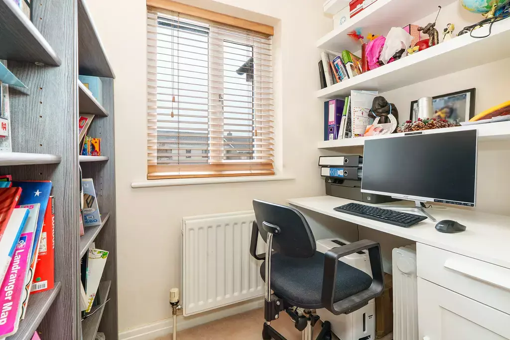 To the first floor, there are four good-sized bedrooms, along with a further study or occasional fifth bedroom/nursery. The principal bedroom benefits from an ensuite shower room, while the remaining bedrooms are served by a stylish family bathroom.