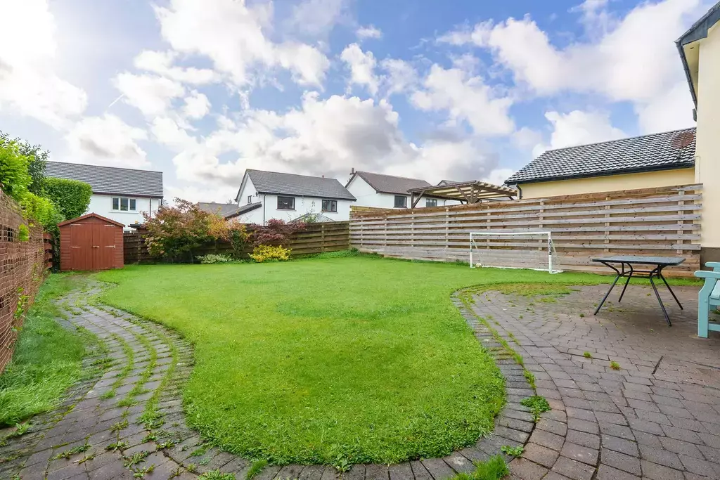 Externally, the property features an attractive block-paved driveway providing off-road parking for multiple vehicles and access to the integral garage. The south-facing rear garden is mainly laid to lawn, complemented by a paved patio area and a storage shed — ideal for outdoor entertaining and family enjoyment.