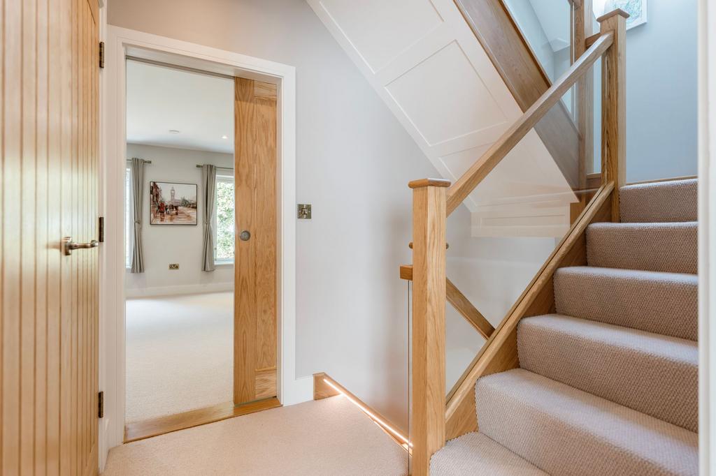 Bold, refined and utterly exclusive, The Warreners reimagines luxury living amidst sprawling, historic landscapes. The Warreners is a stunning detached residence within one of the region’s most exclusive developments, set amidst 10 acres of historic, meticulously landscaped grounds. Completed in 2024 by Hidden Talents Homes, this three-bedroom, three-level home combines contemporary elegance with timeless craftsmanship. Interiors span 1,925 sq. ft., featuring herringbone flooring, bespoke storage and a striking glass balustrade staircase that links every level with subtle lighting. The open-plan kitchen and dining area boasts premium Neff appliances, quartz surfaces, and a seamless flow to a dual-level garden with sun-drenched terraces and lawn. The principal suite offers a luxurious setting with a walk-in dressing room and designer en-suite, while additional bedrooms and living spaces are designed for comfort and style. With refined finishes, integrated garage, and superb connectivity to local amenities, schools, and transport, The Warreners presents a rare blend of luxury, privacy, and countryside serenity.