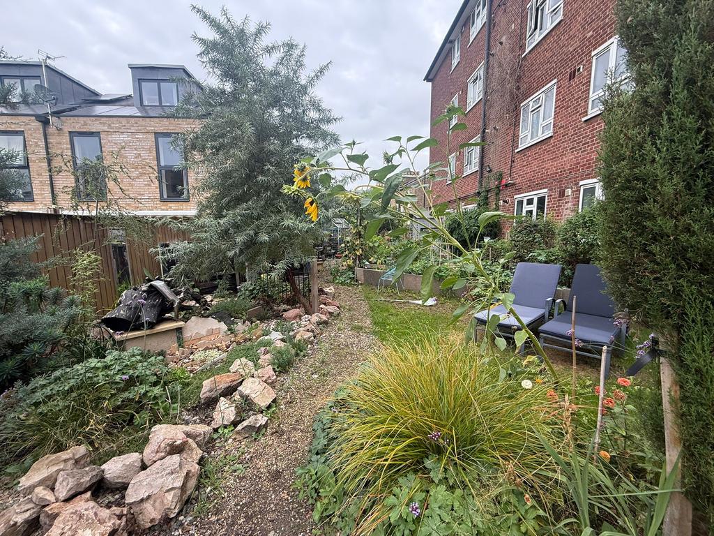 A spacious, bright, modern three double bedroom flat with private communal garden