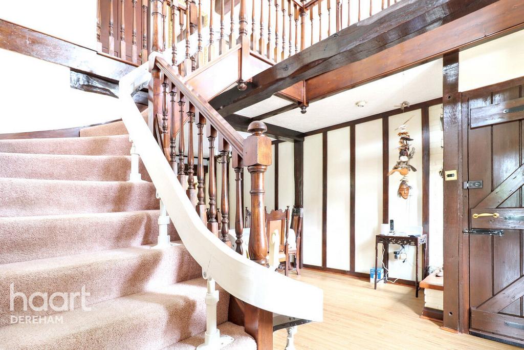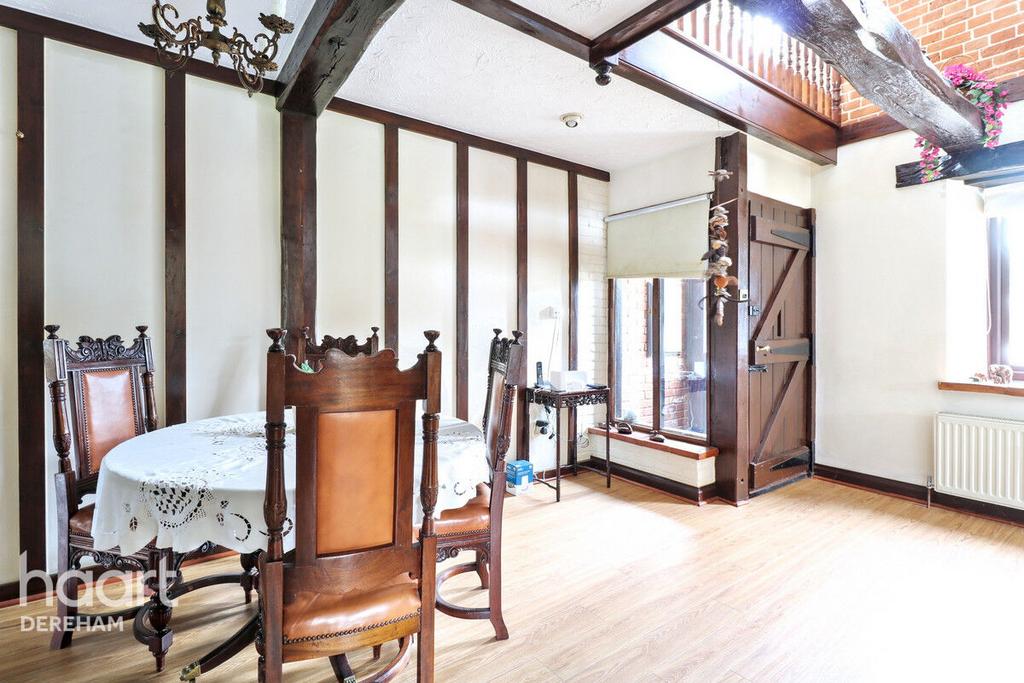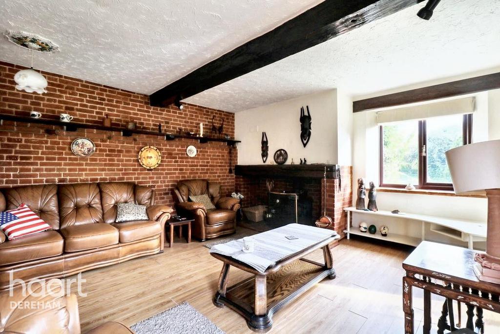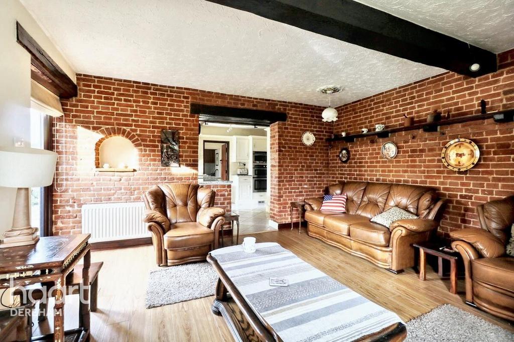 The home welcomes you with a generous driveway and an integrated garage providing ample off-road parking. Inside, you’ll find a series of elegant reception rooms filled with original exposed beams and rustic brickwork that add warmth and personality throughout. The lounge is a standout space, featuring a charming inglenook fireplace with a cast iron stove, creating a cosy yet impressive focal point for relaxing or entertaining.