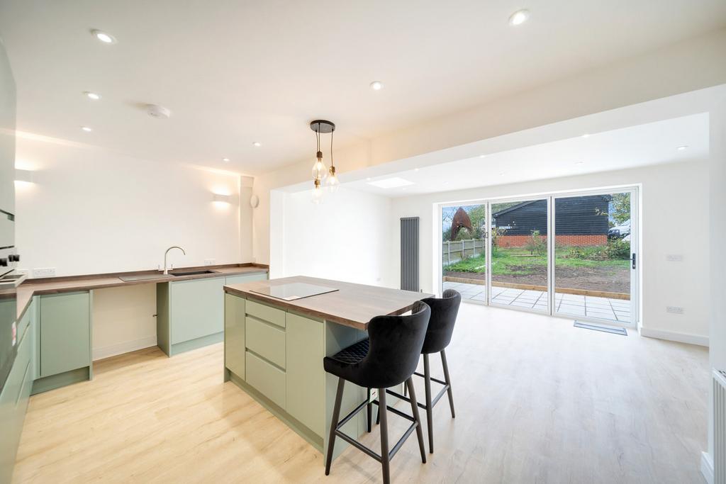 To the rear, the extension transforms the home. The bright, open-plan kitchen diner is a real showpiece, with a skylight and bi-fold doors flooding the space with light and opening onto the new patio. The adjoining utility room adds everyday practicality without interrupting the flow of the main space.