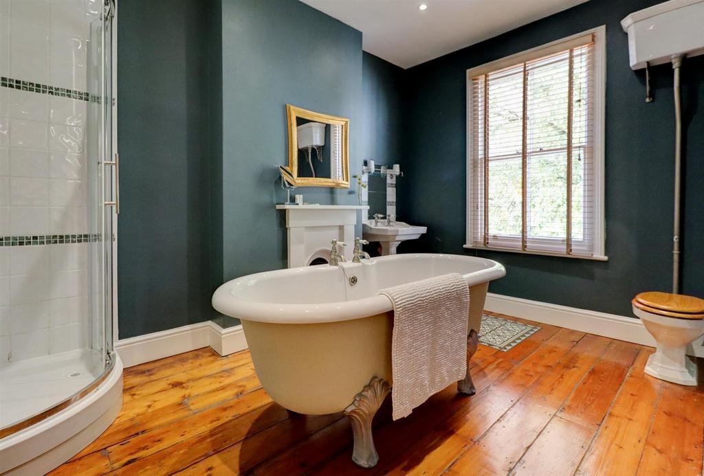 To the mid and first floor; spacious split-level landing with four large double bedrooms with principal bedroom benefitting from ensuite shower room. Main bathroom with full suite including deluxe free standing roll top bath. Additional separate WC to compliment busy family lifestyle.
