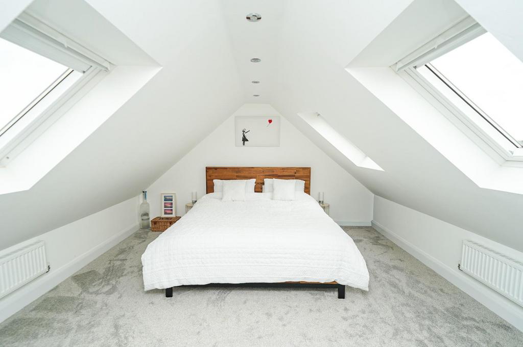 Second Floor - A staircase rises to the impressive second-floor suite, where natural light pours in through three Velux windows. This expansive room offers versatility as a guest suite, teenager’s retreat, or serene home office, accompanied by a beautifully finished shower room - perfectly completing this thoughtfully extended home.