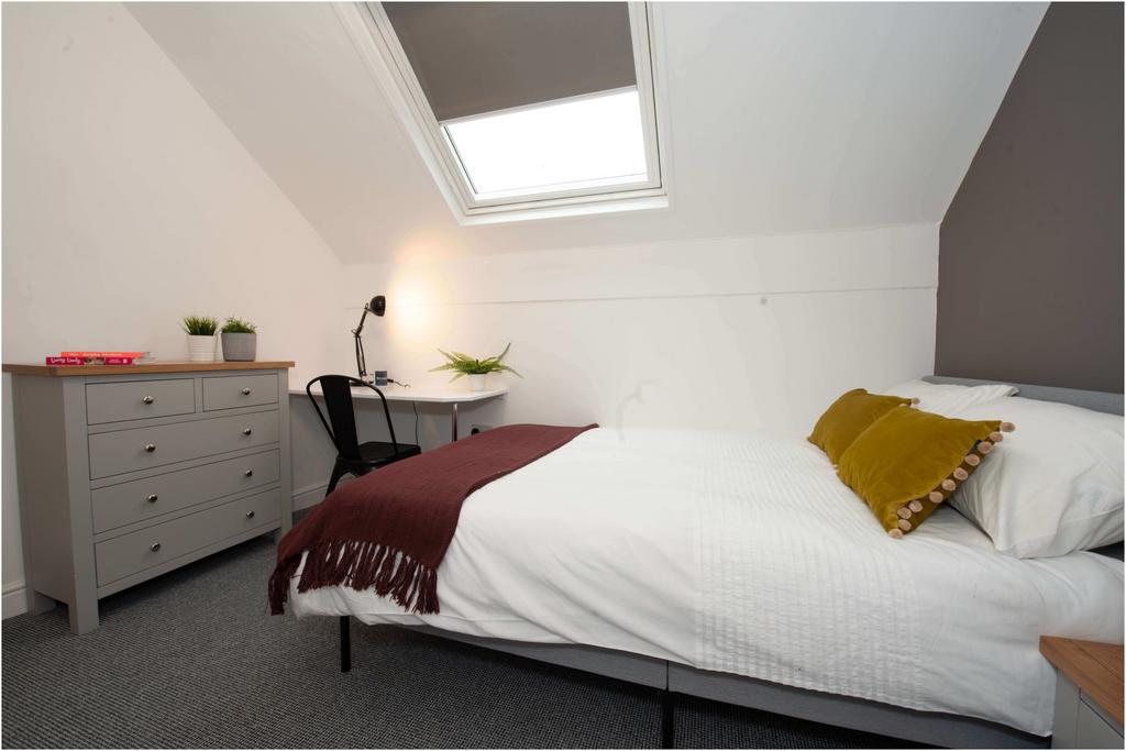 • 6 large double bedrooms, fully furnished with everything you need: double bed, wardrobe, chest of drawers, bedside table, full-length mirror, desk, and chair - ideal for both study and relaxation.