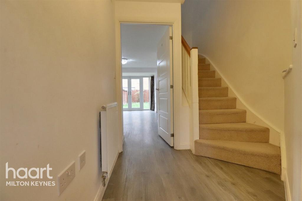 Comprising an entrance hall, cloakroom, kitchen with built in appliances including a fridge/freezer, dishwasher, washing machine with gas hob cooker, lounge/dining room with under stairs storage and French doors leading onto a rear garden.