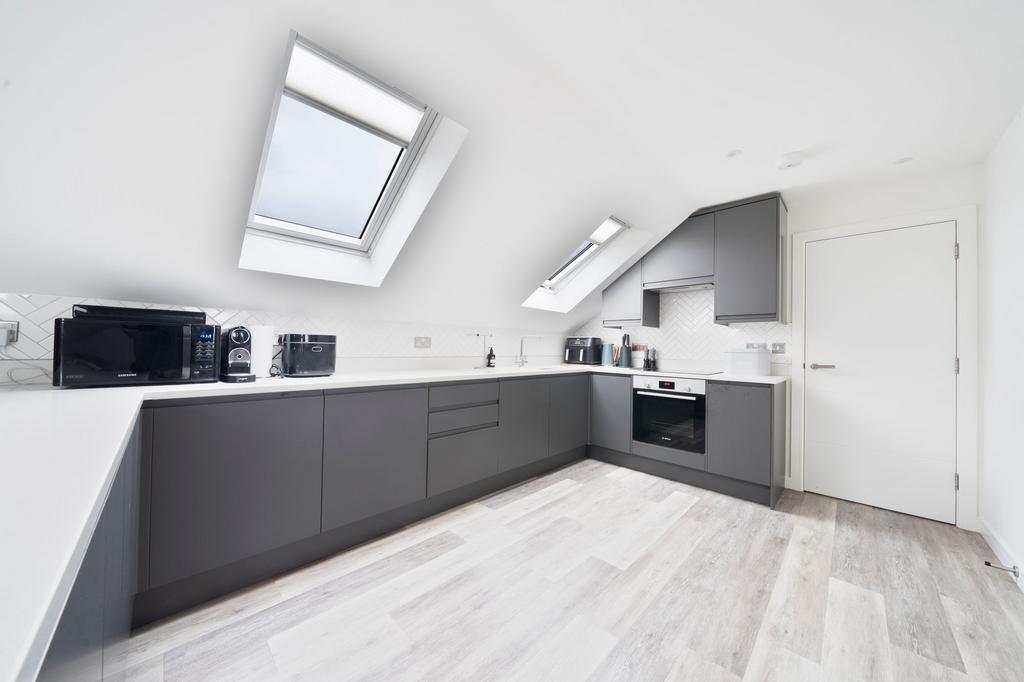 A high-specification three-bedroom penthouse apartment set within a recently developed former Police Station in the heart of the sought-after village of Bottisham, just a short distance from Cambridge. This stylish home offers an impressive open-plan kitchen, living, and dining area featuring high-quality fittings, quartz work surfaces, and integrated appliances, creating a perfect space for modern living and entertaining. The property is beautifully finished throughout, showcasing excellent attention to detail and contemporary design, along with useful and generous storage within the eaves.