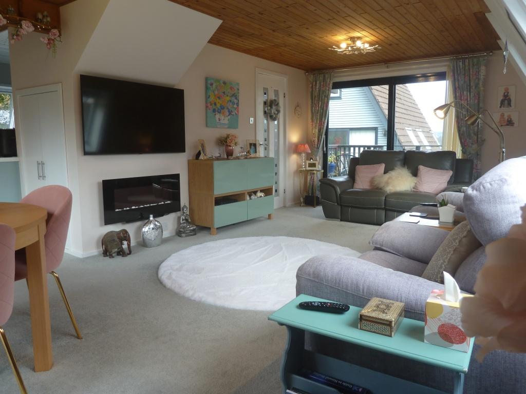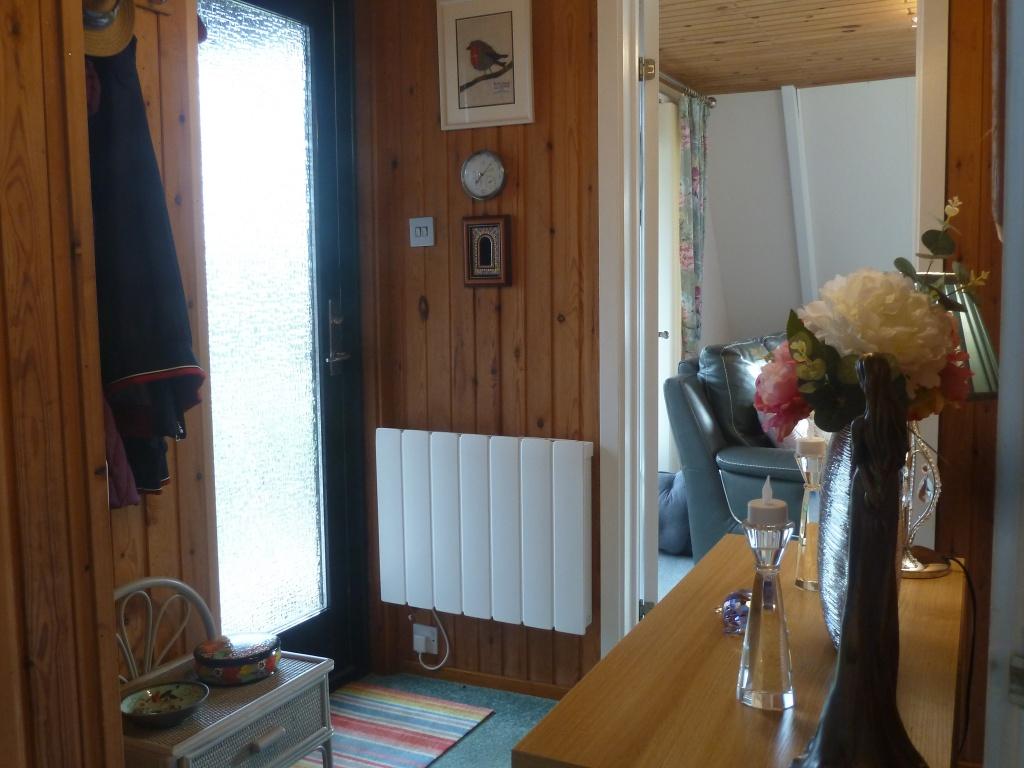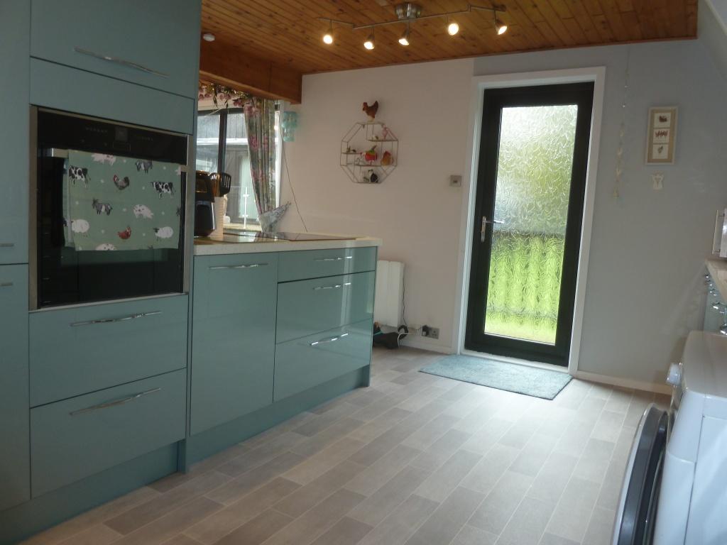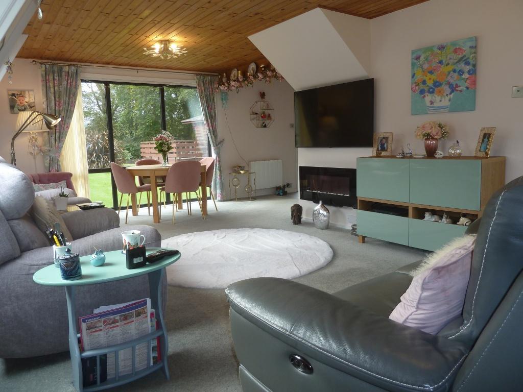 Bright and very spacious open plan lounge, dining area to the kitchen. Windows to all sides flood the room with natural light. Carpeted, ceiling lights. Large sliding patio door to the front with access to the decking . Focal point wall mounted modern electric fire with flame effect. Windows to the side with roller blinds . Large under stairs storage cupboard. 3 x wall mounted eco friendly new panel heaters.