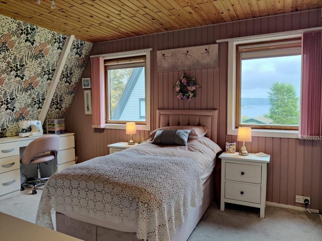 Two window with views to the Holy Loch and beyond .