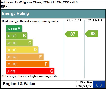 Low voltage downlighters inset. PVCu double glazed opaque window to side aspect. Low level W.C. Wash hand basin set in vanity unit. Large shower enclosure. Chrome heated towel radiator. Fully tiled walls. Linen cupboard incorporating combi gas central heating boiler.