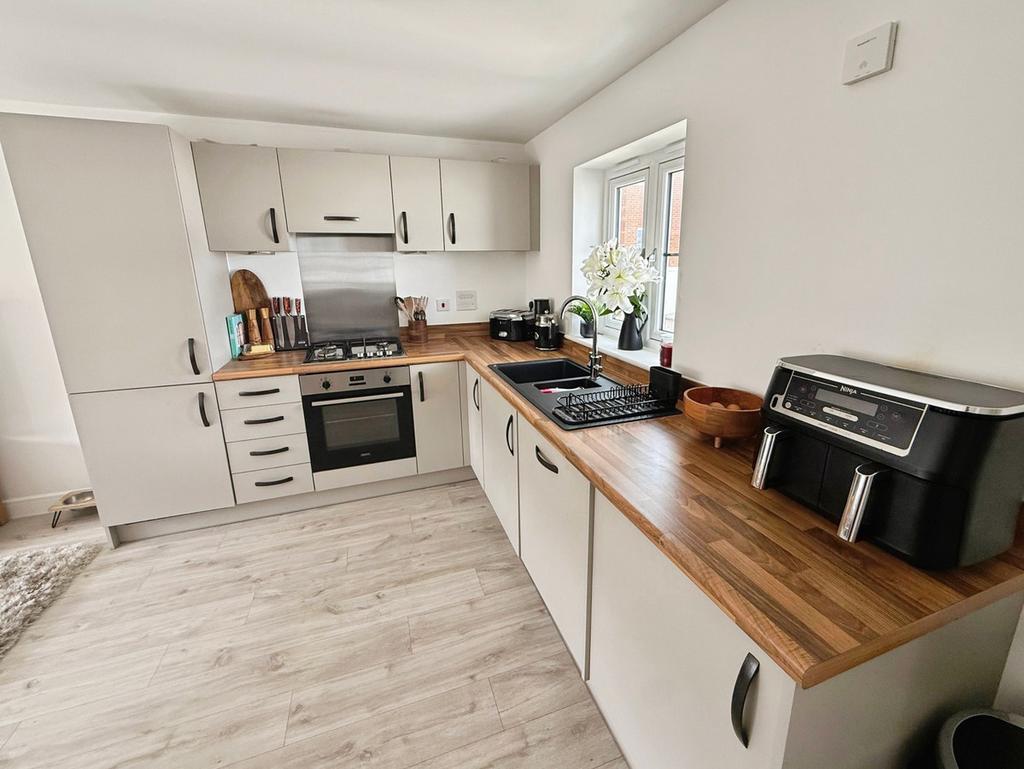 To the other side of the stairs is Bedroom 2, again another double bedroom, so its ideal for a guest room or child's room. There is a family bathroom which is tastefully finished and completing the accommodation is the Living Room/Kitchen/Diner. This open plan room makes a great family space with plenty of room for a large corner sofa. The kitchen is fully integrated with oven, hob, dishwasher and washing machine.