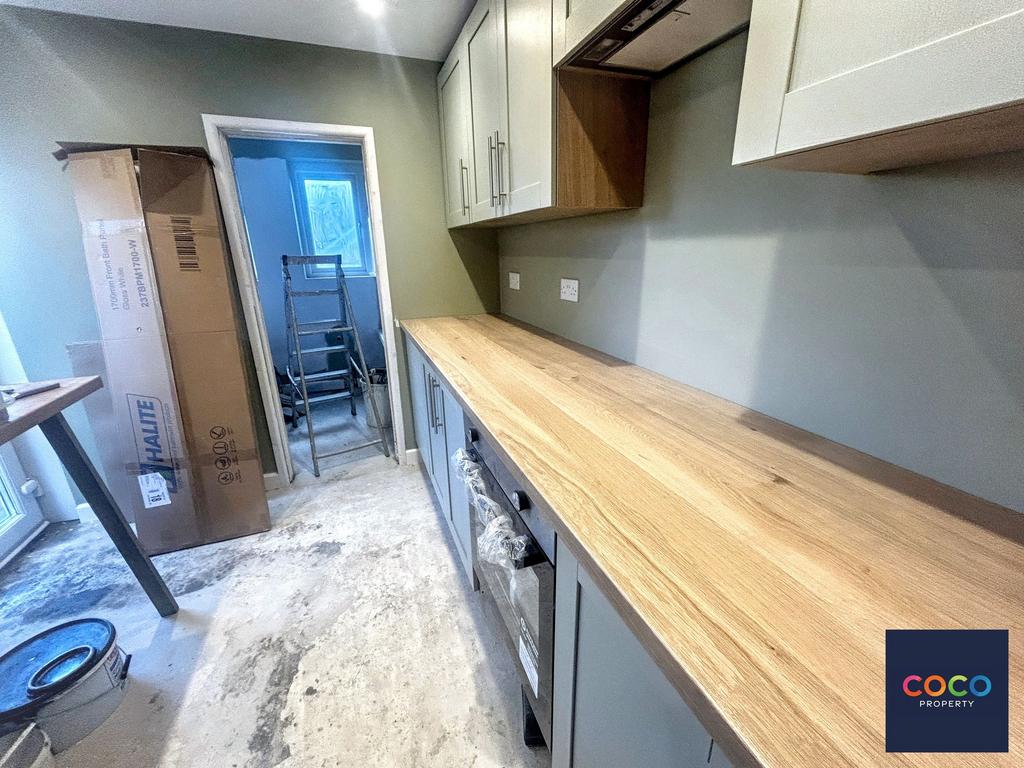 Entering the property, the hallway provides access to the open-plan living area, snug/breakfast room, and stairs rising to the upper floor. The open-plan sitting and dining space offers a bright and versatile layout, ideal for both relaxing and entertaining, with the snug/breakfast room providing an additional area perfect for casual dining or as a quiet reading nook. The kitchen, which will be newly fitted, features a range of contemporary cabinets, ample work surfaces, and plumbing for a washing machine — designed to combine style with everyday practicality. To the rear of the property, the bathroom will also be newly installed and finished to a modern standard.