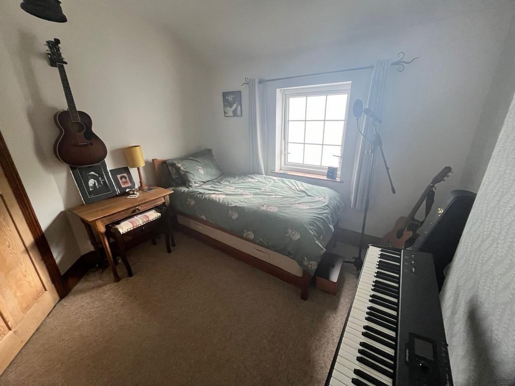 Built in wardrobes, electric radiator, stripped wood floor boards, double glazed window to front.