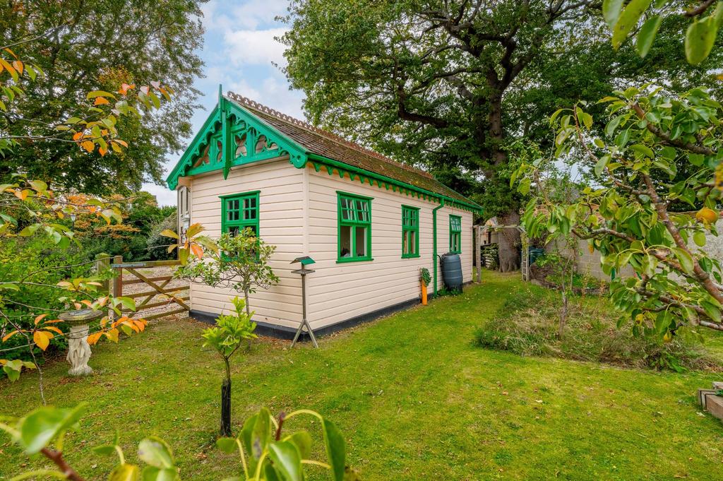Guide Price: £650,000-£700,000. Steeped in heritage and character, this Georgian residence dating back to 1854 occupies a generous 0.39-acre plot (stms) in the sought-after village of Martham. Beautifully modernised while preserving its period charm, the home features three elegant reception rooms, two with traditional fireplaces, decorative cornicing, and sash windows, a separate study, and a modern fitted kitchen with integrated appliances alongside a utility room and WC. Four spacious double bedrooms and a contemporary family bathroom with slipper bath and walk-in shower complete the interior. The landscaped grounds offer manicured lawns, mature borders, and a fruit garden yielding apples, pears, raspberries, cherries, and plums, enhanced by a bonsai-inspired seating area with a koi pond and a covered terrace ideal for entertaining. A sweeping driveway leads to a substantial triple garage with attached workshop and a detached railway-style studio, while the property’s biomass boiler and solar photovoltaic system with battery storage provide impressive energy efficiency in a setting of elegance and village charm.