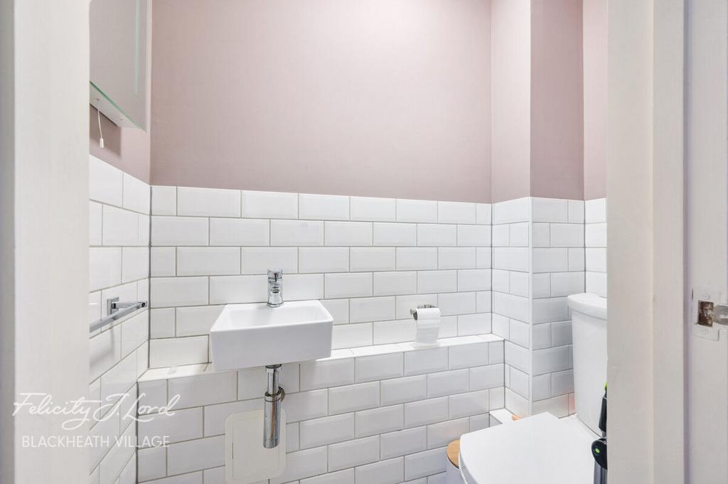 Adding further convenience, the property includes a separate WC, finished with matching metro tiles and fitted with a second basin and WC. Perfect for busy mornings or when hosting guests.