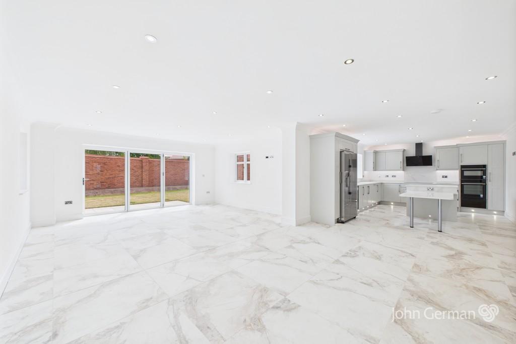 The excellent family living/dining/kitchen is very spacious and has an individually designed kitchen with a comprehensive range of dove grey units with Calacatta Dolce worktops and inset Franke stainless steel sink and drainer with mixer tap. A full range of quality appliances comprises Neff built in oven with warming drawer, induction hob with extractor canopy above and combination microwave oven. A beautiful Italian porcelain tiled floor extends into the family living and dining area where bifold doors open to the terrace and garden. There is a separate pantry cupboard and additional utility room having a matching range of units and integrated washing machine and tumble dryer, plus a Franke stainless steel sink. There is an elegant drawing room featuring a contemporary electric fire wall and double doors opening to the separate dining room which in turn has French doors opening to the terrace and garden. There is a versatile third spacious reception rooms ideal as a study or children's playroom.