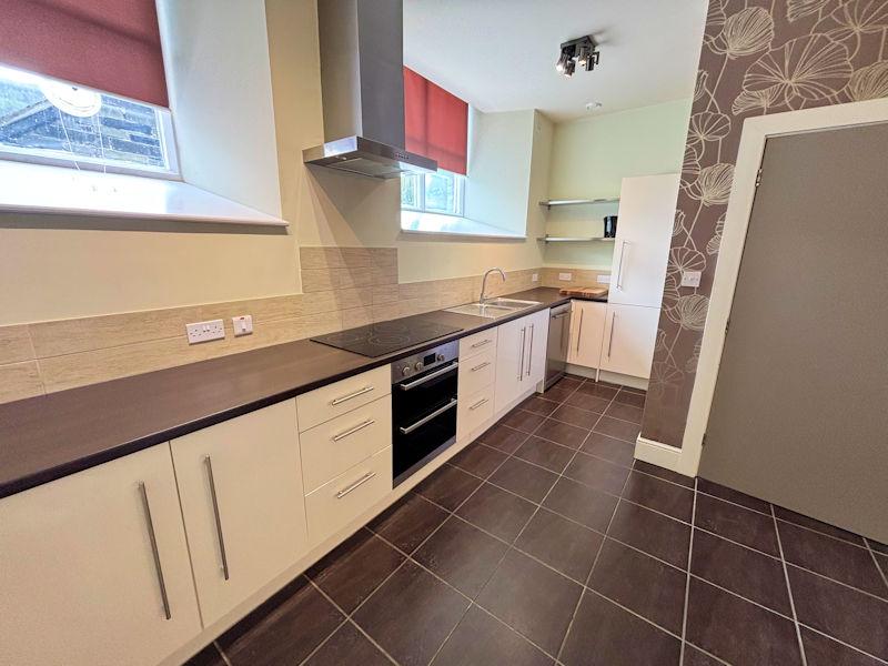 Dual aspect windows, built in under stairs cupboard with hanging rail and light - consumer unit located here, a good range of kitchen cupboards, laminate work top, built in oven, ceramic hob and extractor over, integral fridge freezer, plumbed for dishwasher, stainless steel 1.5 sink and drainer, tiled floor. 2 steps up to lounge area with oak flooring.