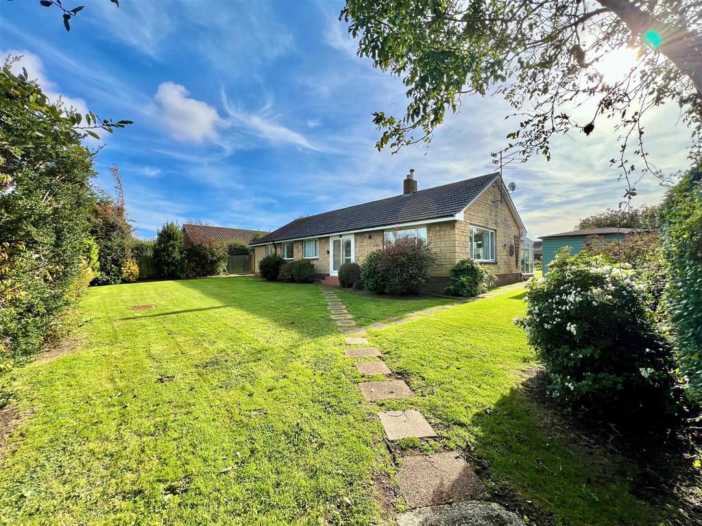 A unique, individually designed detached bungalow featuring three bedrooms, set back from the road on a generous plot with ample off-road parking and a garage.
