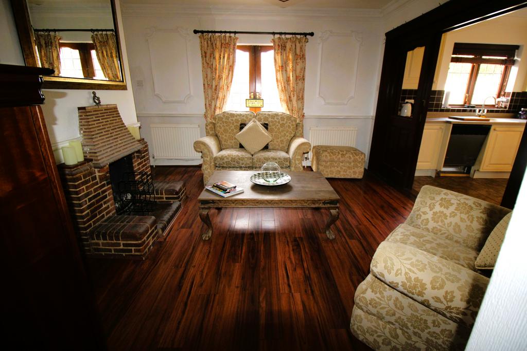 Reception Two: Double glazed lead light French doors to rear garden, painted, papered walls with feature paneling, dado rail, laminate flooring, brick built fireplace with tiled hearth, walk-in pantry, radiator, coved ceiling doors to;