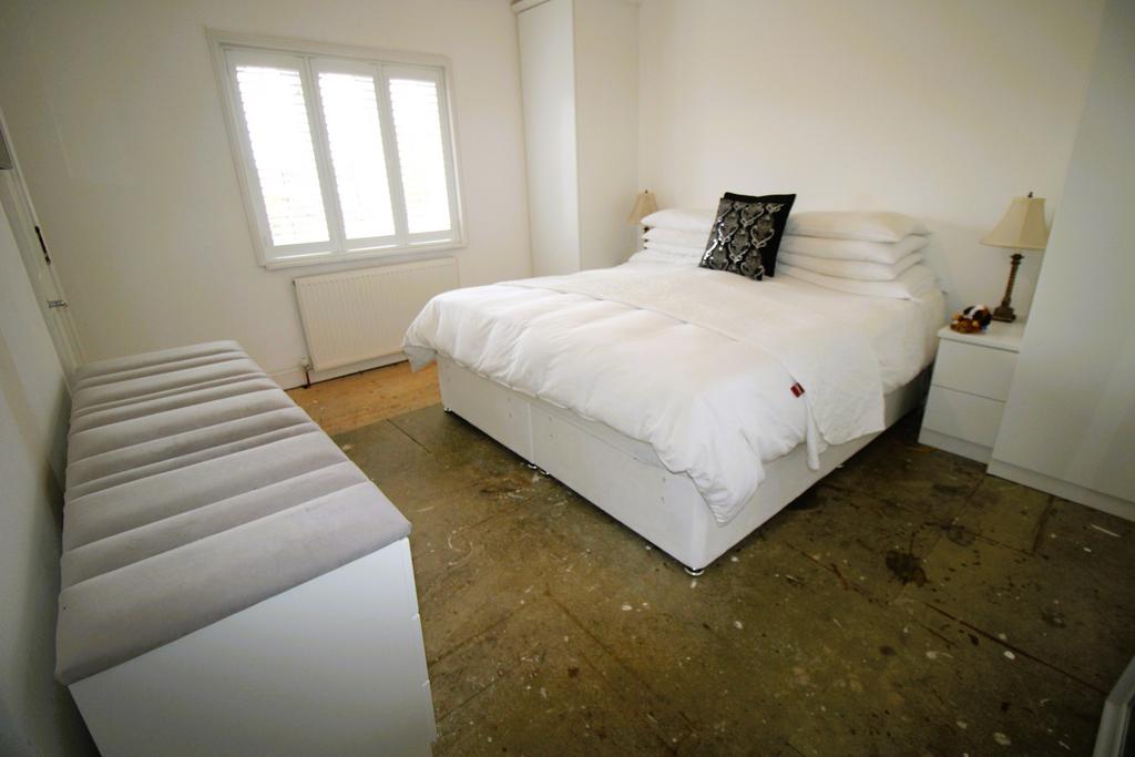 Bedroom One: Double glazed window with shutters to rear, painted walls, built in wardrobes, radiator, loft hatch, door to;