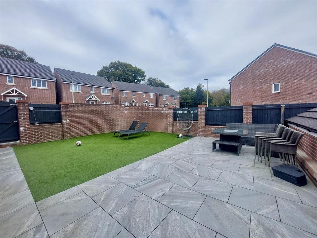 Outside, the low-maintenance rear garden offers a peaceful retreat, perfect for enjoying sunny afternoons or hosting barbecues. The property also includes a driveway and garage, providing secure parking and additional storage options.