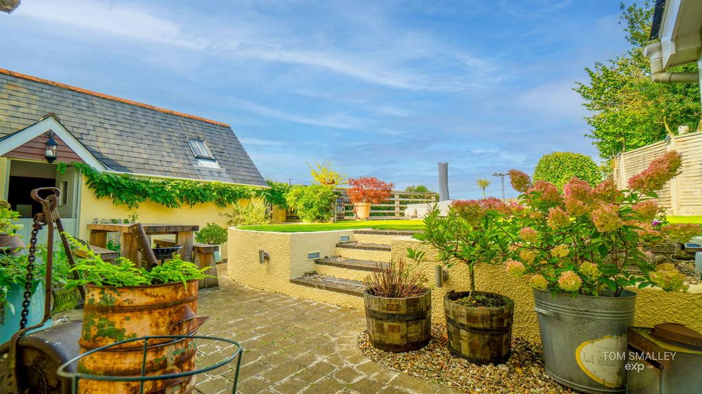 A private gravel driveway leads to a generous parking area with turning circle and a large single garage/workshop with light and power. Mature borders, a tranquil pond, and a suntrap patio frame the front of the home, with glorious rural vistas beyond. To the rear, a secluded garden provides further outdoor living space, featuring a level lawn, two patio areas, and a superb timber-built garden office, fully insulated, with light, power, and hardwired internet—ideal for home working.