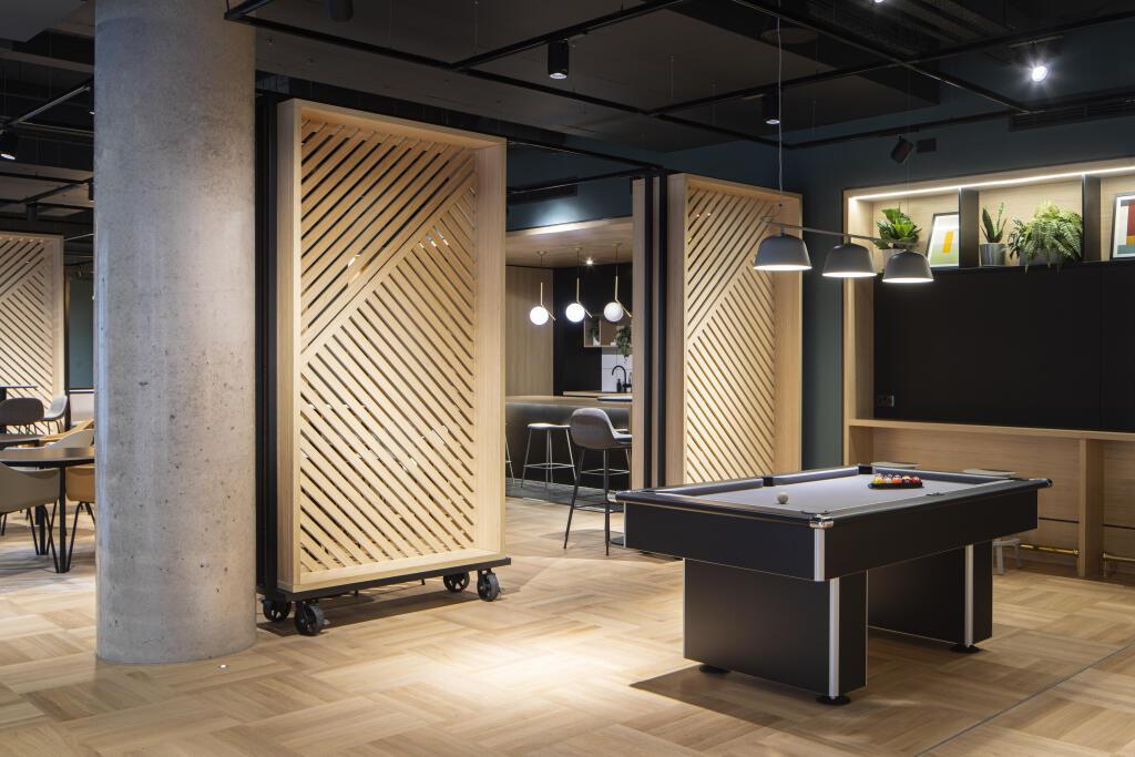 - Residents' club room with TV, seating, pool table, and kitchenette