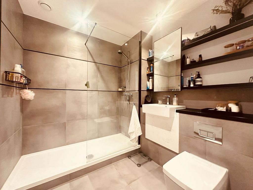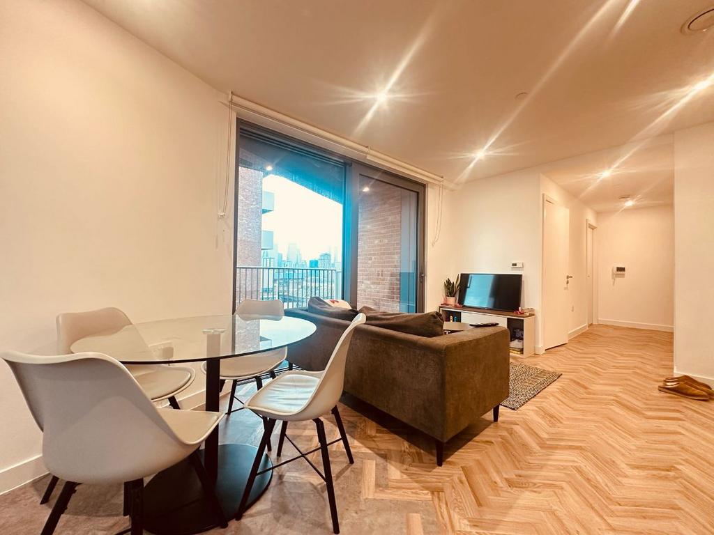 This bright, modern, spacious apartment spanning 580 square feet is set on the 6th floor of a modern purpose built block. The flat is offered in immaculate decorative condition throughout. Comprising an open plan kitchen and living area, engineered oak flooring throughout, a bedroom with a built-in wardrobe and a contemporary bathroom. Other advanced design features include a natural oak splash back, premium Smeg appliances and a large southwest facing private balcony. The development offers a range of amenities, including a 24 hour concierge, cinema room, residents' room, and a residents' garden situated on the podium level. Three Waters enjoys a strategic location near the river, with proximity to Stratford, offering a blend of rich history and a vibrant array of boutique shops and restaurants. The development benefits from excellent transport links with Bromley by Bow (0.2 miles), Devons Road DLR (0.6 miles) being the closest underground and DLR stations. Together with Stratford for both Jubilee and Elizabeth Lines, as well as a choice of bus routes, it offers an easy commute to the City, Canary Wharf, London City Airport, Royal Greenwich, and further.