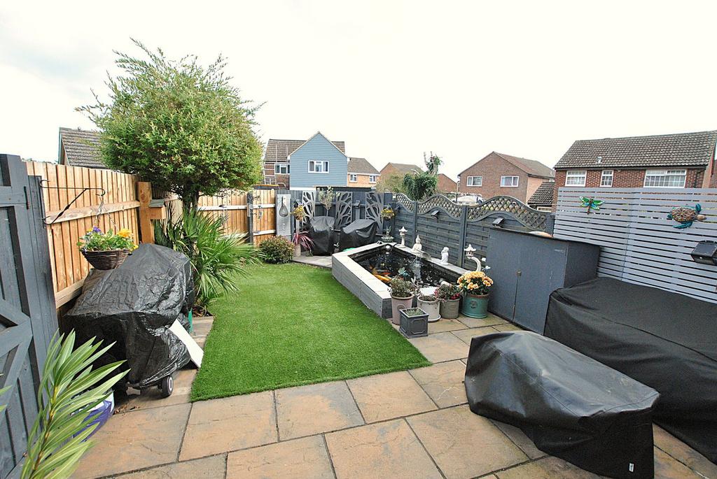 The garden to the rear of the property is designed to be very easy maintenance , with it benefitting from two separate paved patios, with the remainder to artificial grass. Currently there is a raised ornamental fish pond, although this could be changed by new owners easily into a superb raised flower bed or vegetable patch, should this be your preference. The garden is enclosed by wooden fencing with side access gate leading to the front of the property. In our opinion this garden is the perfect space for entertaining guests during summer months.