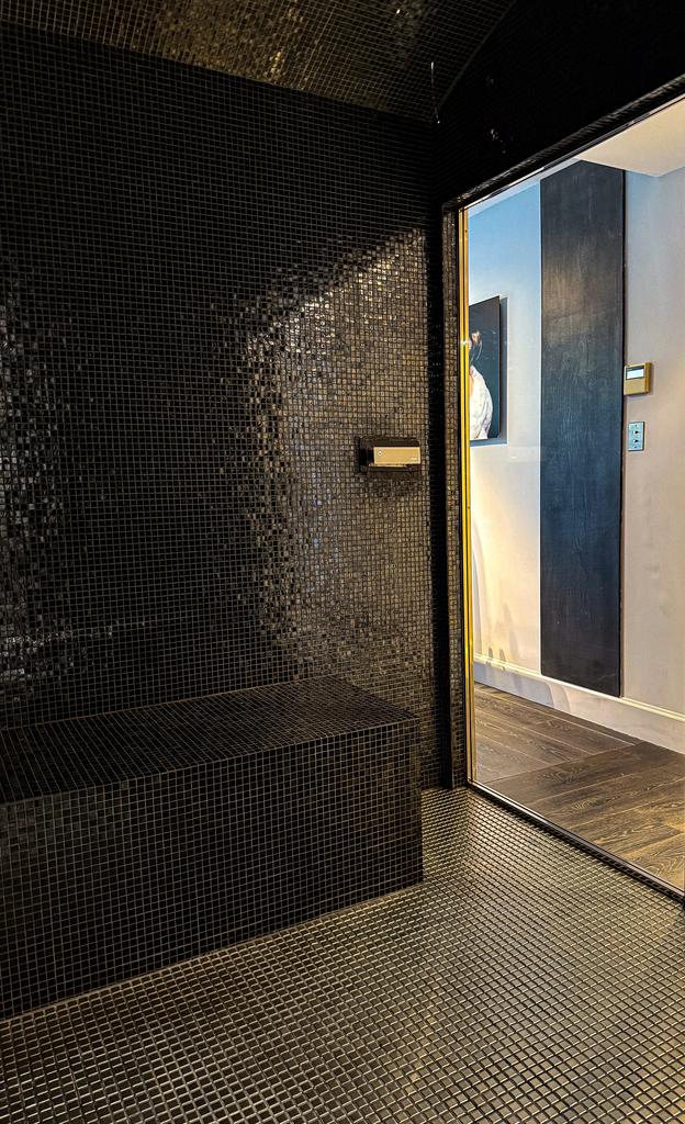 Outside, the landscaped gardens adorned with olive trees frame a magnificent outdoor living area, perfect for alfresco dining or simply relaxing under the Côte d’Azur sun. Guests can unwind in the outdoor hot tub after a swim in the infinity pool, while the spacious pool house features a summer kitchen, lounge, private gym, massage room, and hammam — offering the ultimate in luxury and well-being.