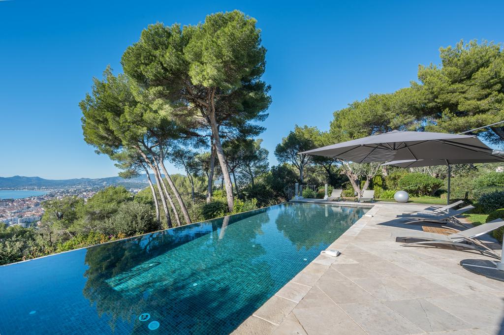 À l’extérieur, les jardins paysagers agrémentés d’oliviers entourent un superbe espace de détente, parfait pour des repas en plein air ou des moments de farniente sous le soleil azuréen. Les hôtes pourront se relaxer dans le jacuzzi extérieuraprès une baignade dans la piscine à débordement. Le pool house spacieux comprend une cuisine d’été entièrement équipée, un salon, une salle de sport privée, une salle de massage et un hammam — une véritable oasis de luxe et de bien-être.