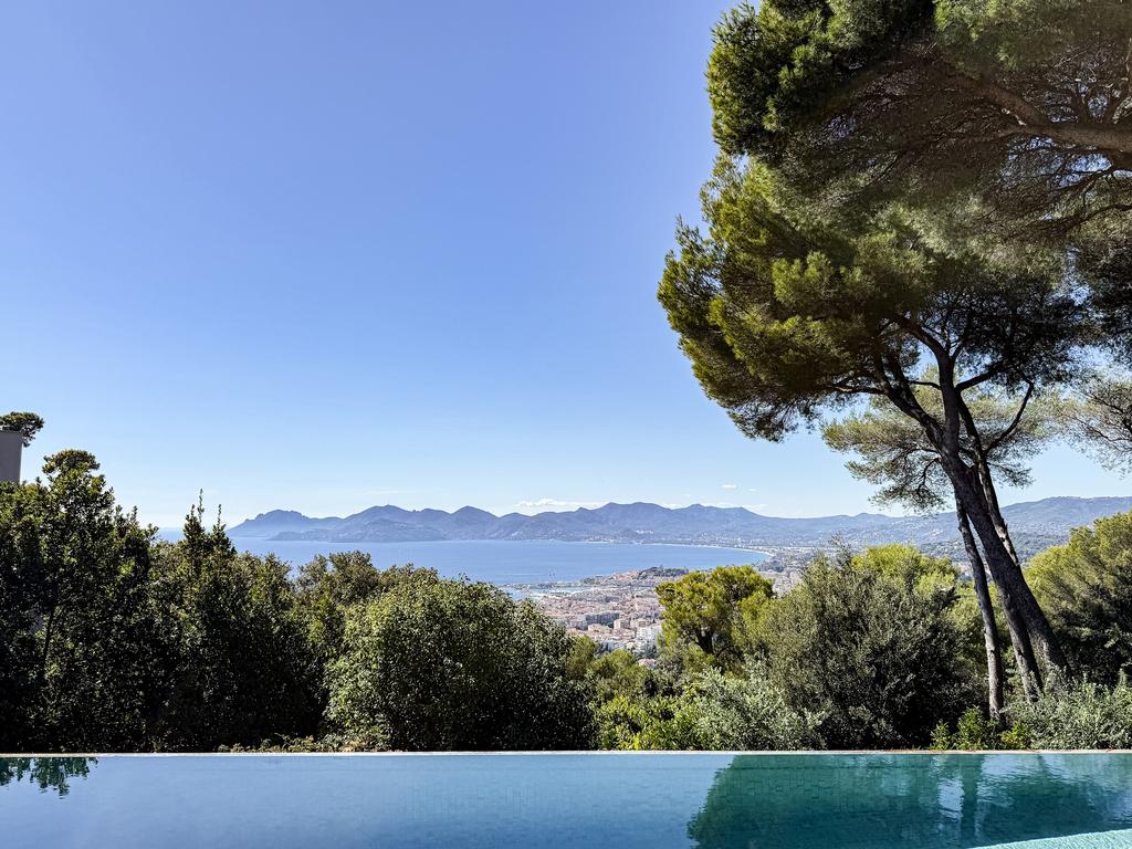 Nichée dans les collines pittoresques de Super Cannes, cette somptueuse villa de luxe se situe à moins de dix minutes en voiture des plages, restaurants et boutiques de la ville. Parmi ses atouts majeurs : une piscine à débordement, un espace bien-être avec salle de sport privée et spa, ainsi qu’une vue panoramique imprenable sur la mer.
