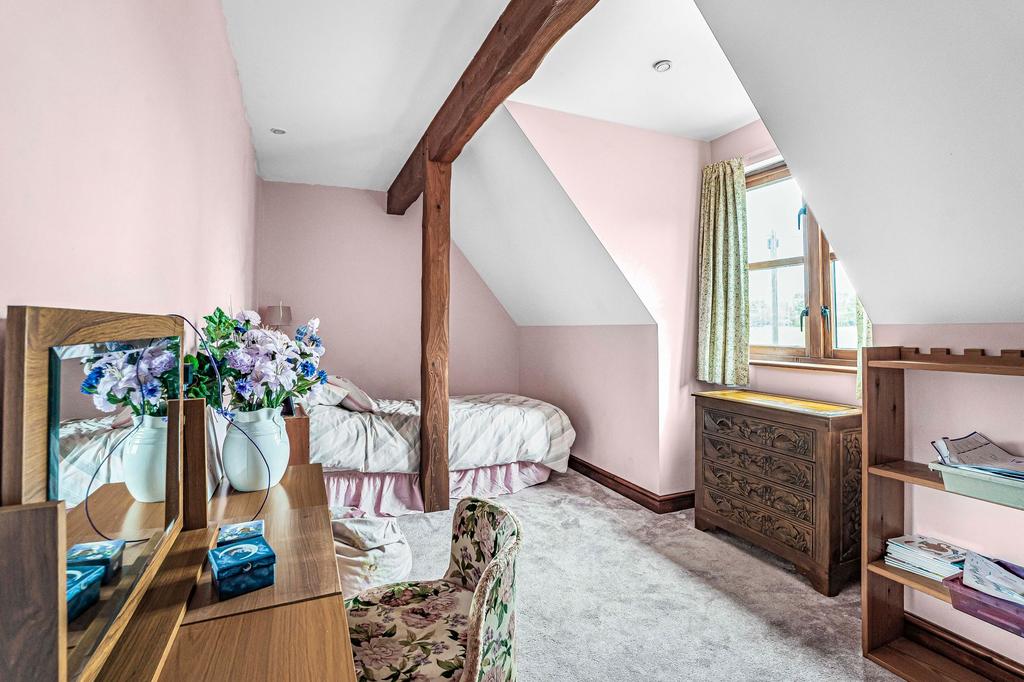 A large double bedroom with a window to the rear and two built-in double wardrobes. An aesthetically pleasing part vaulted ceiling with timber A frame creating a lovely feeling of space.