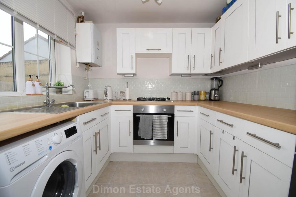 Single drainer stainless steel sink unit, wall and base cupboards with worksurface over, built in oven and 4 ring gas hob, space for fridge/freezer, plumbing for washing machine, double radiator, wall mounted gas central heating boiler, ceramic tiled floor, PVCu double glazed window, glazed etch glass door to: