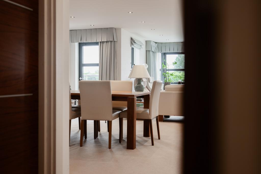 The accommodation features a generous open-plan living and dining area – perfect for both relaxing and entertaining – complemented by a contemporary, fully equipped kitchen finished to an impeccable standard. Both bedrooms are spacious and filled with natural light, with the primary suite enjoying the privacy of its own en-suite bathroom.