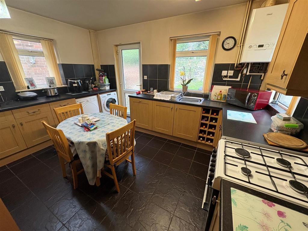 Dining Kitchen - 4.06m'' x 3.38m''' (13'4'' x 11'1''') - Modern fitted kitchen having a range of wall and base units incorporating stainless steel sink unit, tiled splash back, oven & hob with extractor, cooker, integrated dishwasher, plumbing for auto washer and radiator.