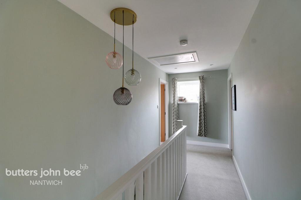 The property sits within a large corner plot with gardens to the front , side and rear. The front garden offers an open aspect with EV charging point and parking for seven or eight cars. The rear garden is enclosed to offer lawn, paved path sunken seating area.