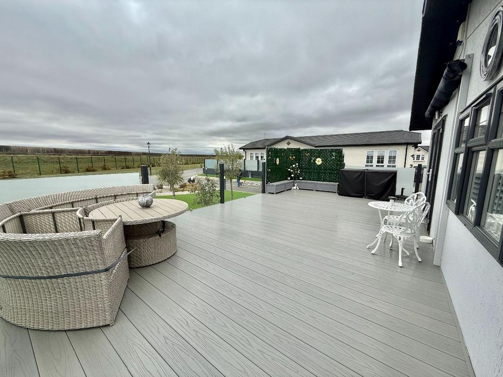 Externally, you can enjoy the decking area WHICH IS TWICE THE SIZE OF THE STANDARD PARK HOME ON THIS SITE, ideal for outdoor dining or relaxing in the sun, all surrounded by beautifully maintained grounds. The extra-long plot provides both privacy and ample space, making this property one of the largest available models in the resort.