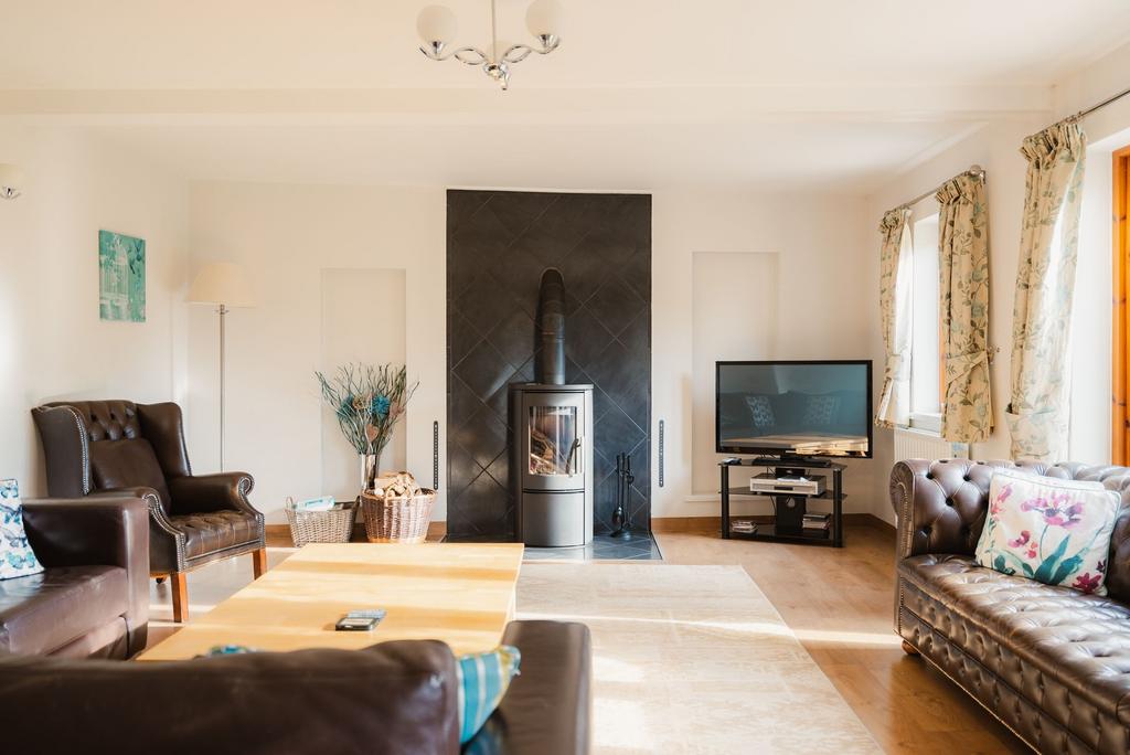Outside, access is from an initial right of way from the country lane and then through double gates to the ample parking area with plenty of room for numerous vehicles. The remainder of the garden is level, easy to maintain and mainly laid to lawn. The previously mentioned raised foundations give an elevated terrace seating area too.