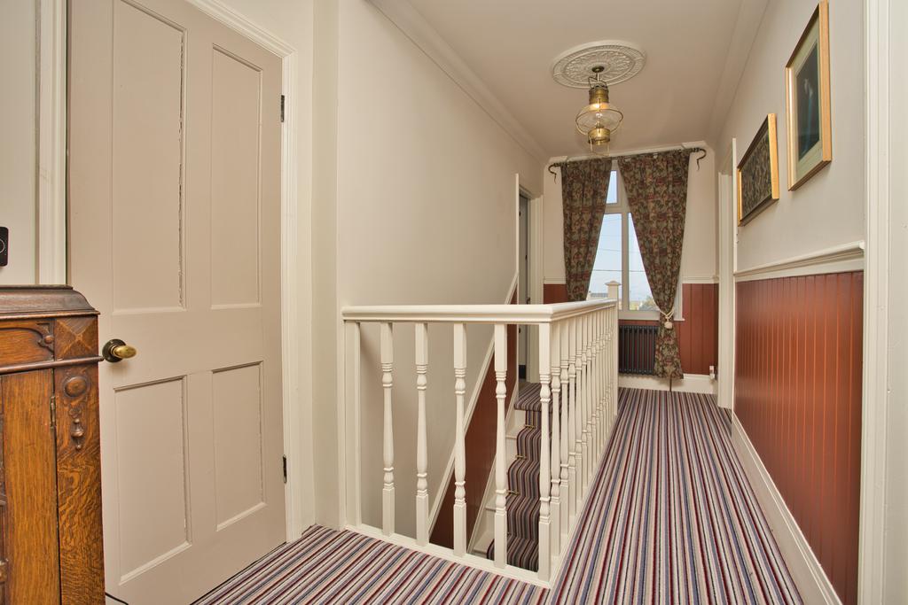 Half glazed door leading into panelled hallway with wooden floors. Understairs cupboard housing the gas meter, a separate cupboard for the electrical meter, and a coat cupboard with electrical fuses.
