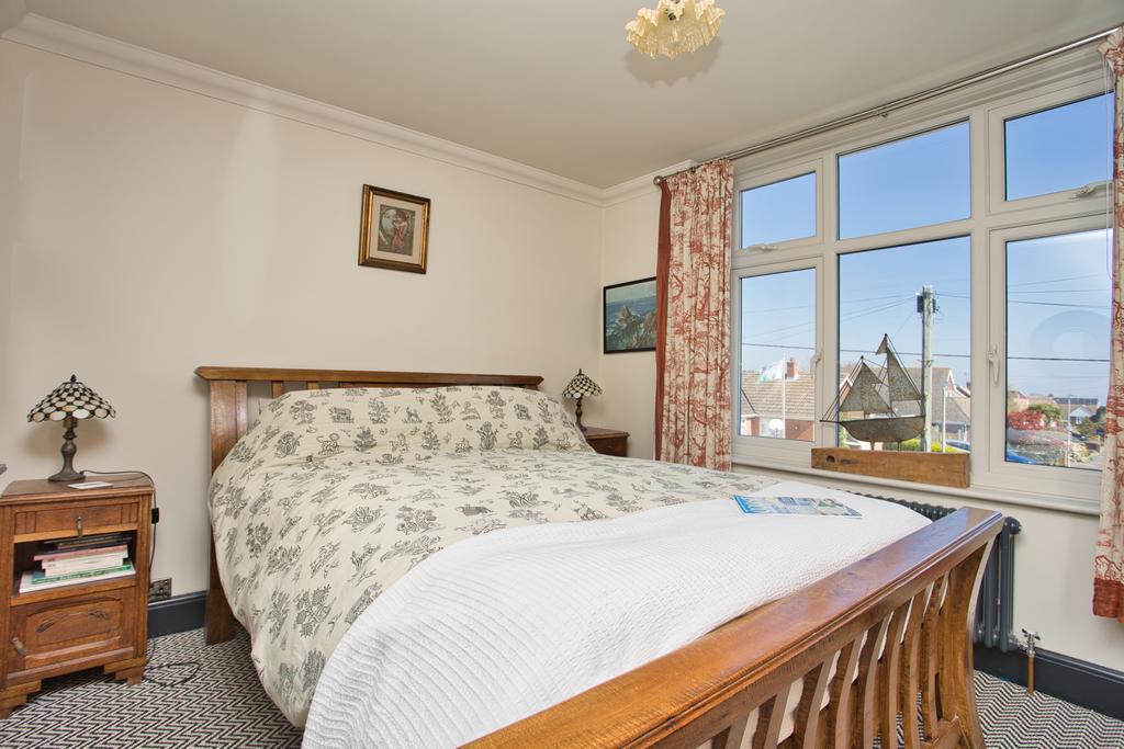 Double, column radiator, window to the front with sea views, and restored fireplace.