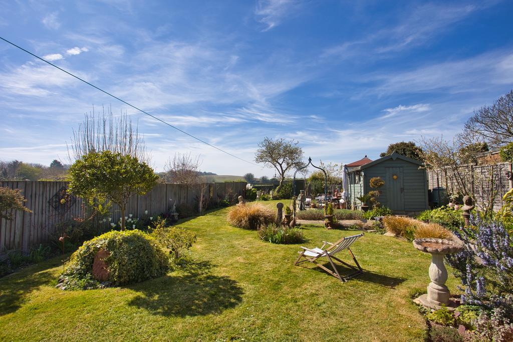 Outside, the south-facing rear garden has been thoughtfully landscaped, offering a number of secluded seating areas from which to enjoy the sun throughout the day. Mature shrubs and fruit trees—including cherry, apple, and pear—add seasonal colour and charm, while a brick-built barbecue and delightful summer house (with power connected) provide perfect settings for outdoor enjoyment.