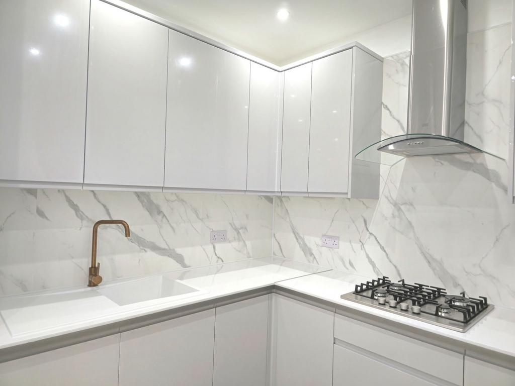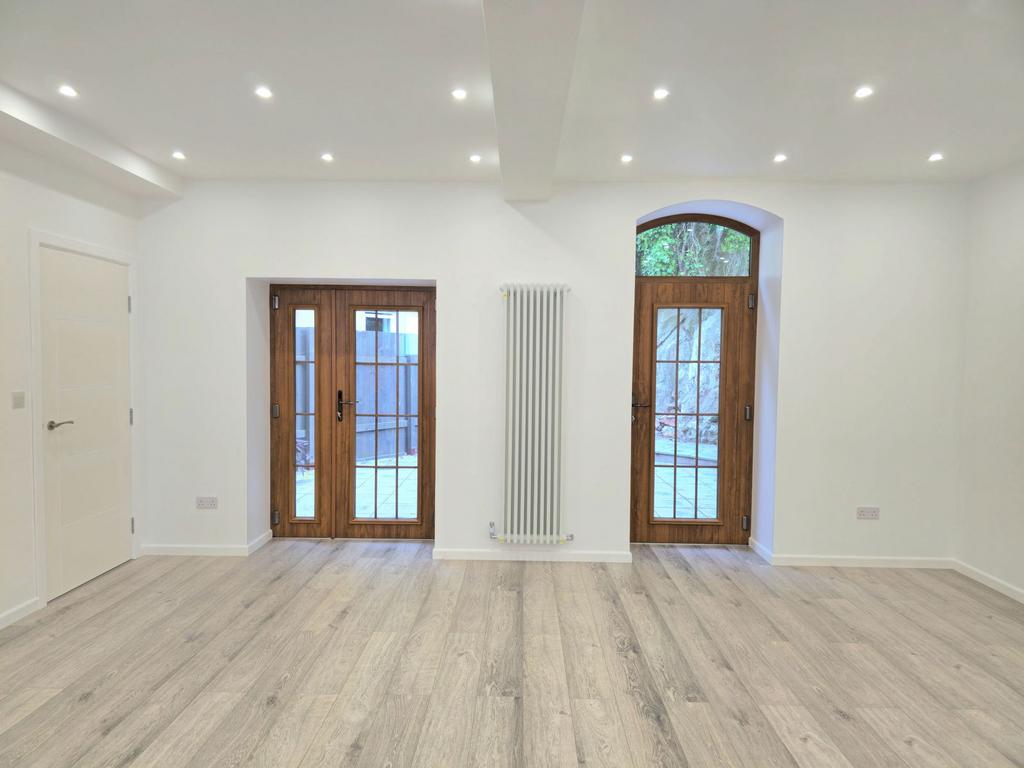 This expansive room offers a bright and airy space which will allow various layouts which can then take advantage of the two large double glazed doors that open out to the private garden. There are ample led spotlights to the ceiling along with numerous double power points and one with usb charging points. Two Victorian style radiator. Wood effect flooring. There is a deep cilled double glazed window which overlooks Park Hill Road. This large lounge/diner is open to:-