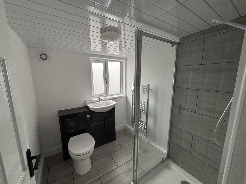 Shower Room. With shower cubicle, vanity hand basin and low level WC. Heated towel rail, double glazed window and extractor fan.
