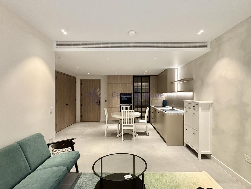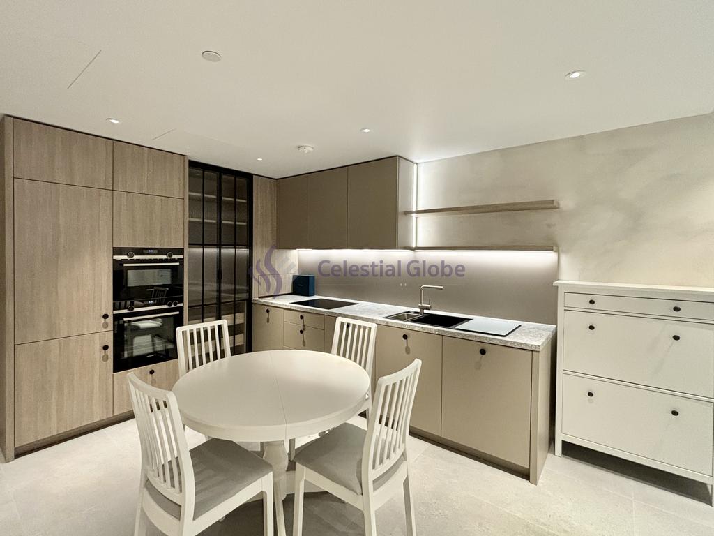 The apartment features a bright and spacious open-plan living and dining area, enhanced by floor-to-ceiling windows that flood the space with natural light and offer captivating city views. The bespoke kitchen comes fully equipped with high-end integrated appliances, sleek cabinetry, and quartz worktops - ideal for those who love both style and practicality.